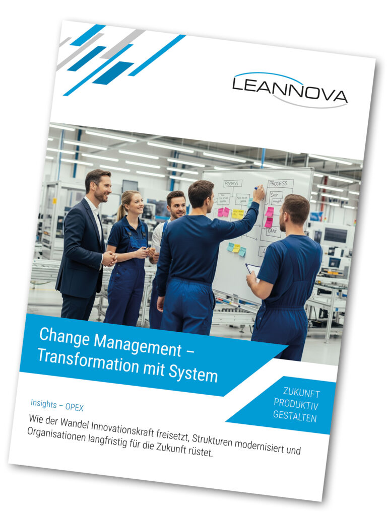 Die Broschüre „Leannova Insights OPEX – Change Management – Transformation mit System“ bietet Ihnen einen fundierten Überblick darüber, wie Sie Veränderungsprozesse strukturiert, menschenzentriert und nachhaltig gestalten können. Sie richtet sich an Führungskräfte, Projektverantwortliche und Transformationsmanager, die vor der Aufgabe stehen, komplexe Veränderungen in dynamischen Umfeldern zu steuern.