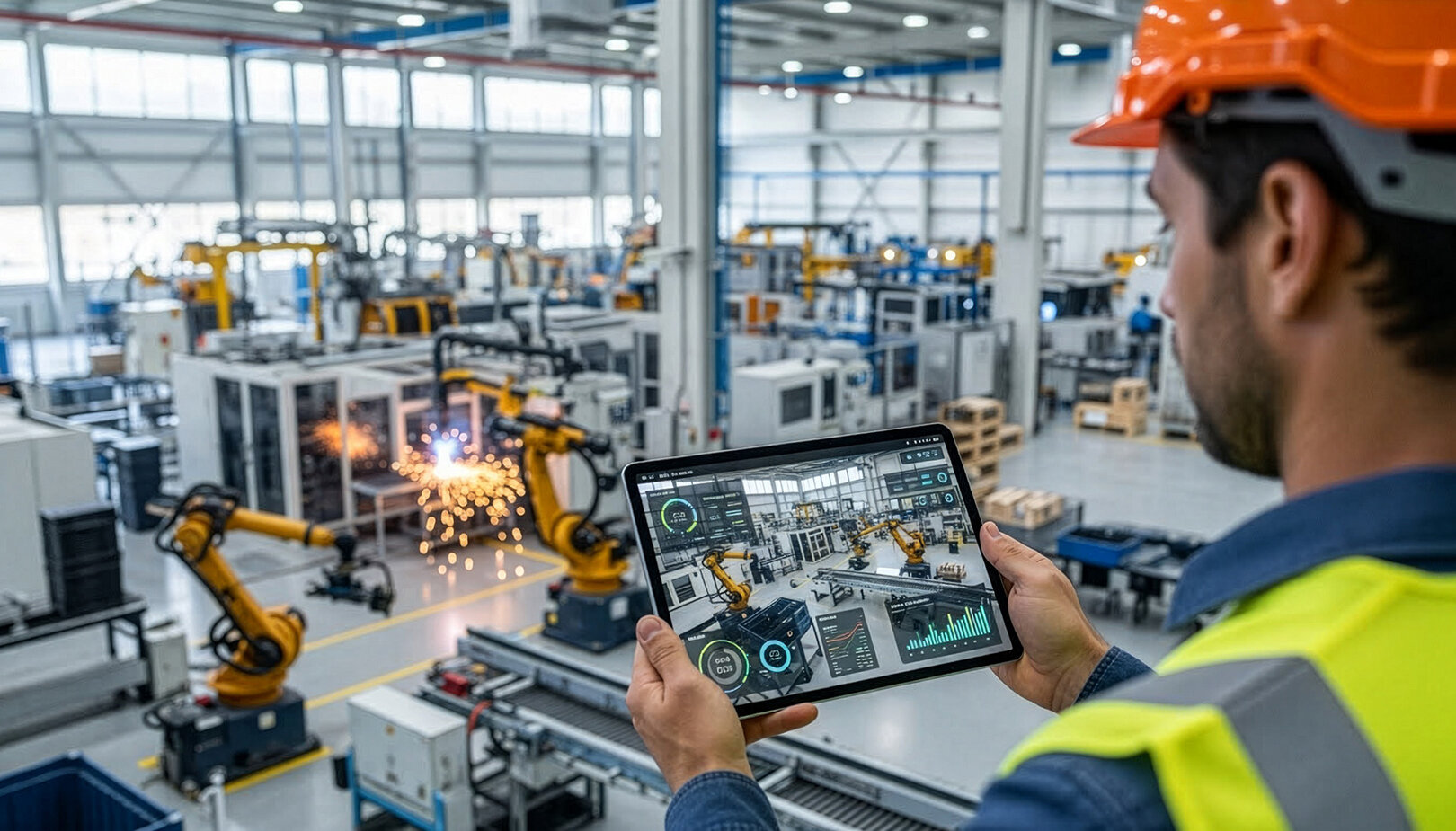 Sensoren, IoT-Geräte sowie ERP-, MES- und Lagerverwaltungssysteme fließen in ein zentrales Modell ein.
